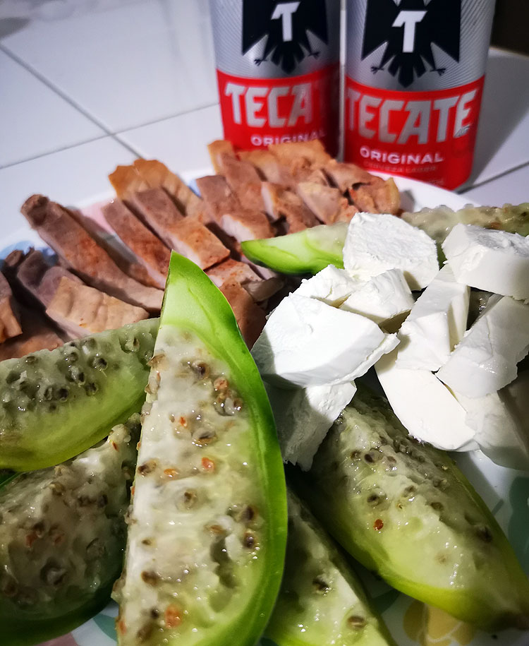Кофе-кортадо показывала. Сосиски чамойадо показывала и еще покажу )) А вот капрезе-мексикано.