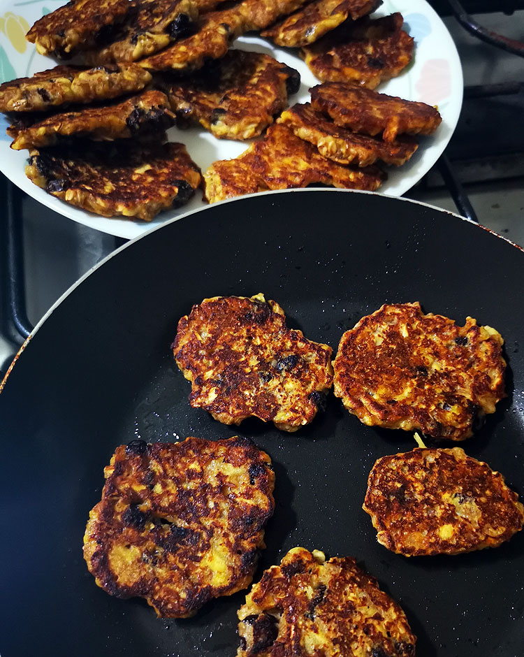 Драники у меня в этот раз – из бананов. Я же уже говорила, что здесь бананы – хорошая замена картошке (и дешевле почти в 2 раза). Вот в драниках тоже запросто картошку на бананы заменить. Мне понравилось.