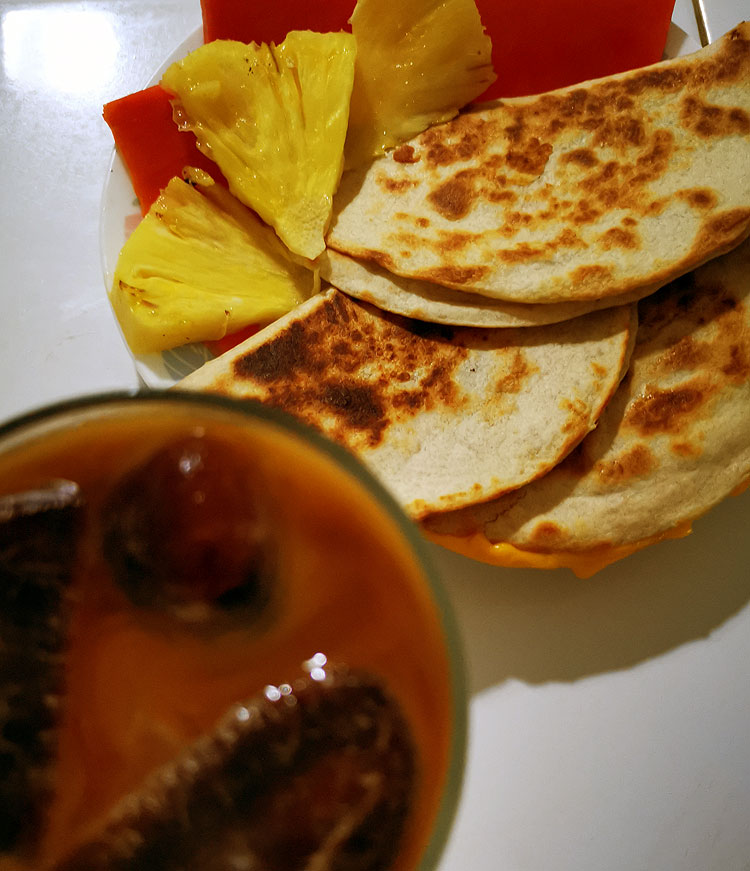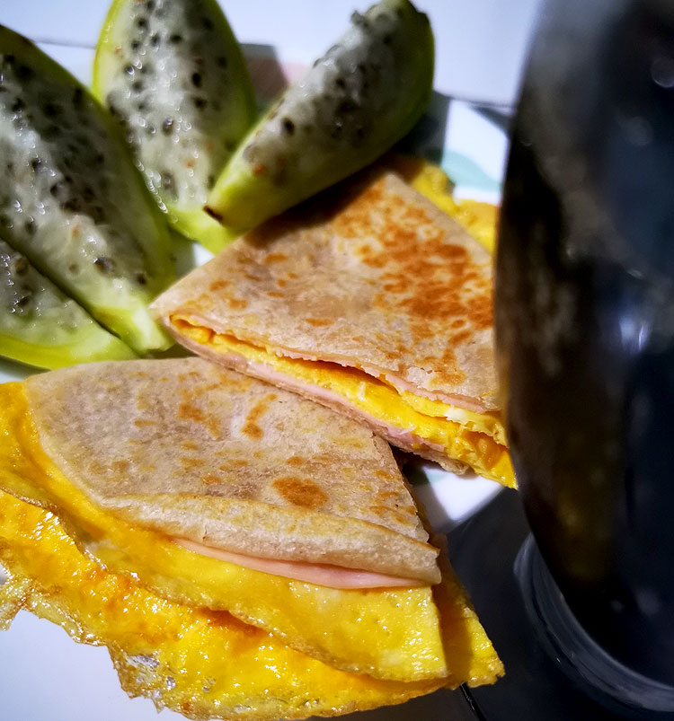 А вот завтрак с кесадильками.