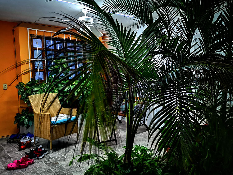 Кресло вполне удобное. Вентилятор есть, розетка есть. Столик, чтобы поставить холодный имбирный чай – в наличии. Одно из моих обычных рабочих мест в нашем доме.