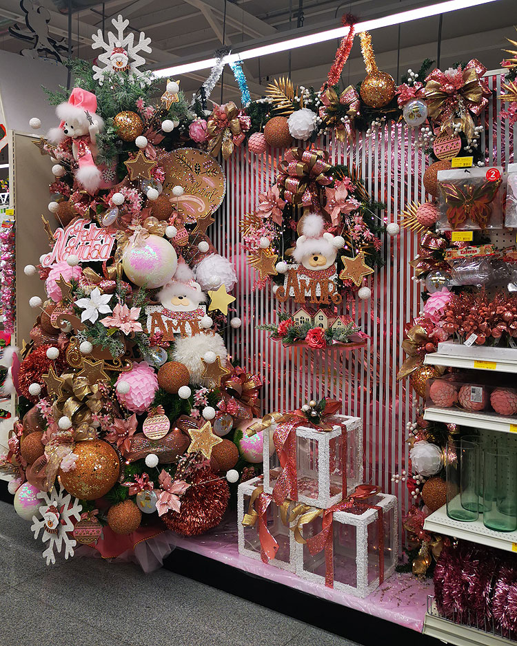 Как ни странно, в Омске перед Новым годом именно в строительных магазинах была самая красота (ну, и плюс один большой детский магазин “Дружный мир”). А, и раньше до ковида Икея еще делала хорошие новогодние отделы. Они были не такие, как везде – но этим мне и нравились. Почему в строительных? Не могу понять. Но и в Леруа, и в Бауцентре, и в Оби – мы прямо перед Новым годом специально по ним ездили. Муж по строительным рядам ходил, а я по новогоднему отделу.