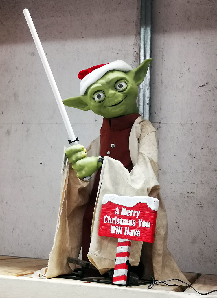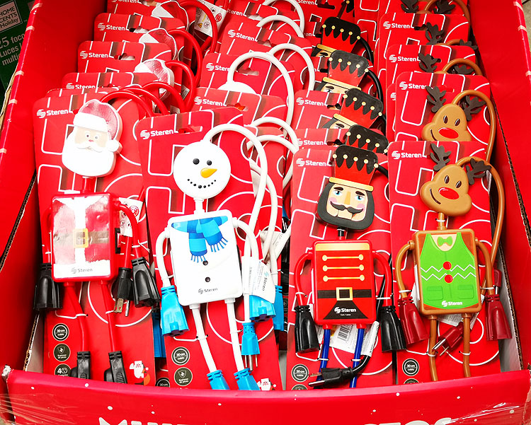 - Ой, вот это меня очень умилило. Это специальные тройники для розеток новогодние. Из башки торчит шнур, который втыкаешь в розетку, а ручки и ножки -- туда можно воткнуть всякие новогодние гирлянды.