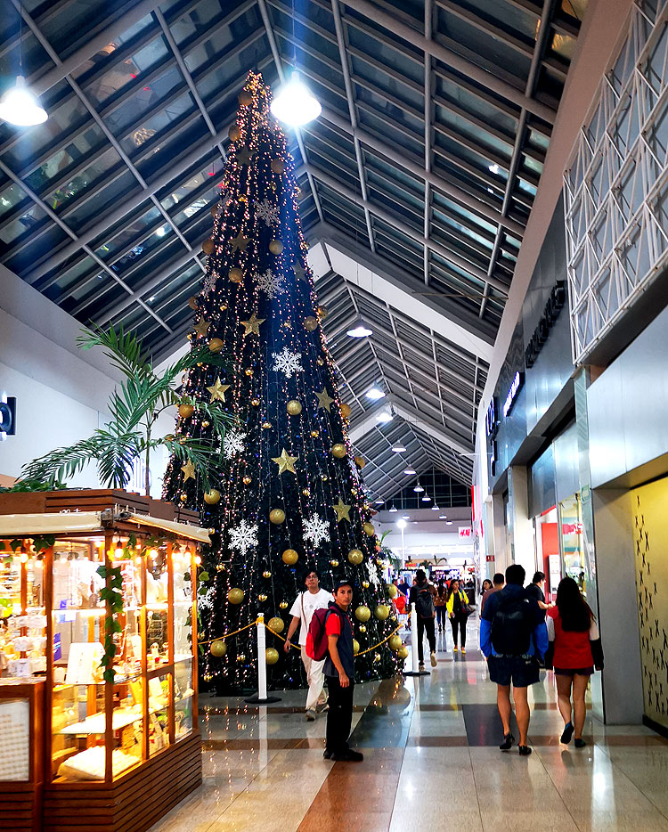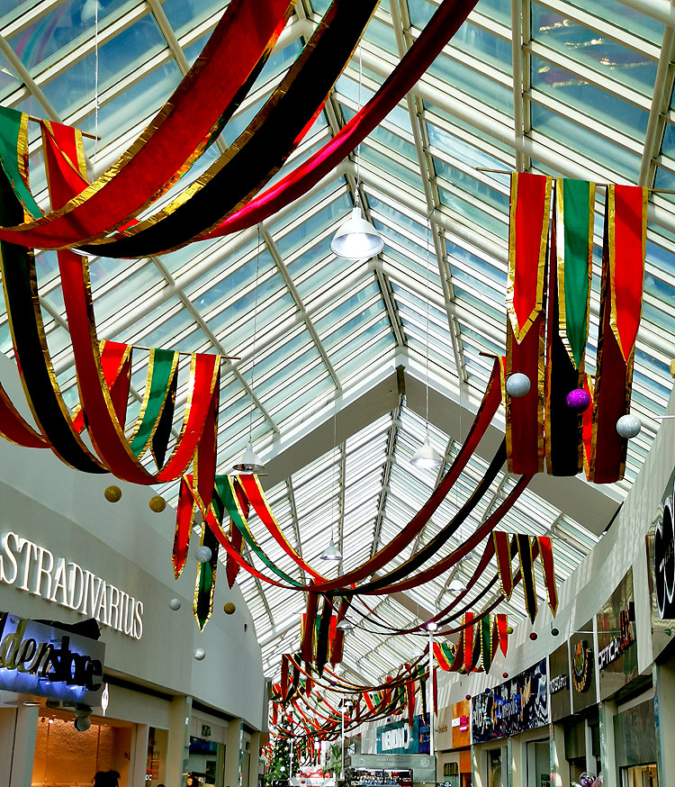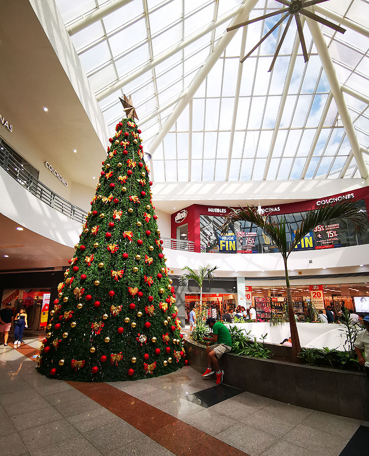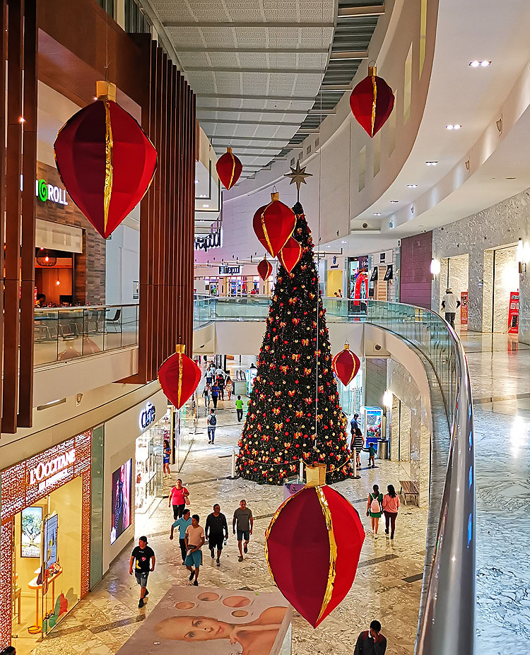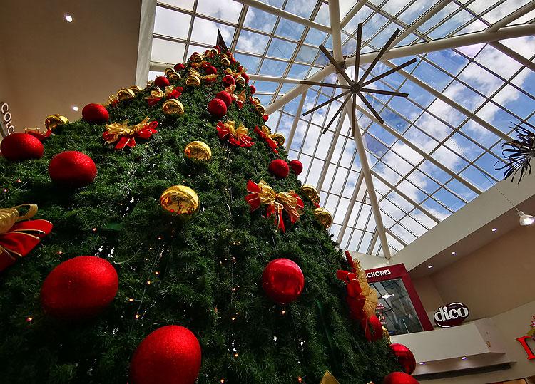 Это в том же молле, где и предыдущая красно-золотая. Если молл большой, никто же не мешает несколько елок поставить, да? - Красно-золотая на фоне потолка. В некоторых местных моллах есть потолки! )))
