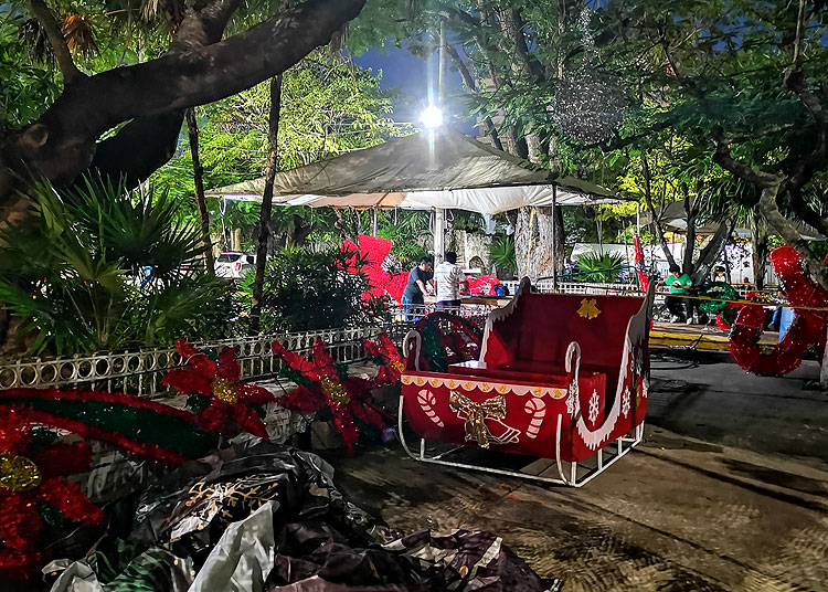 - Мэрию пока в Рождественское убранство не переодели. После того, как убрали День Мертвых -- украсили к Дню Революции (он был в понедельник). Но скоро, скоро нарядят по-новогоднему. Вот, уже что-то варят на заднем дворе мэрии.