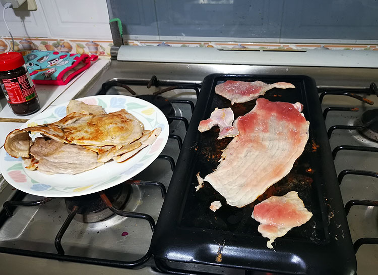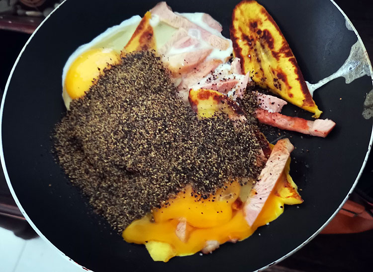 Да, яичницу, на которую грохнулся перец, полностью выкинула. Пыталась перец убрать – но не вышло. Вот перед выкидыванием банан, который с краю видно, утянула и съела )))