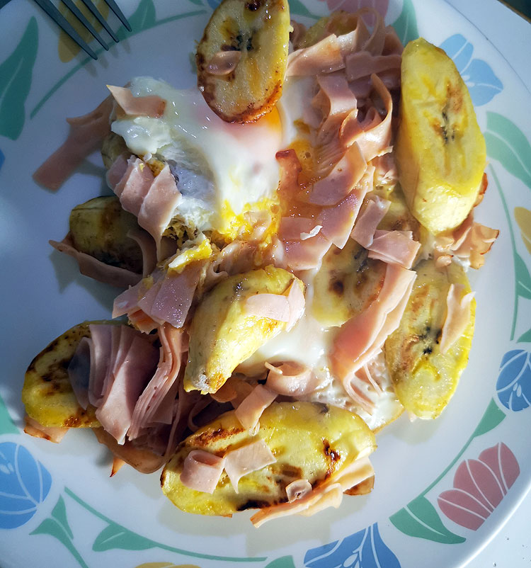 Не весь завтрак целиком, а только яичница с ветчиной и бананами. Бананы в яичнице – очень вкусно.