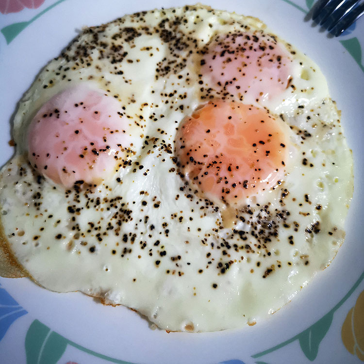 То, что выше – порция мужа. А потом я себе такую же яичницу жарила.