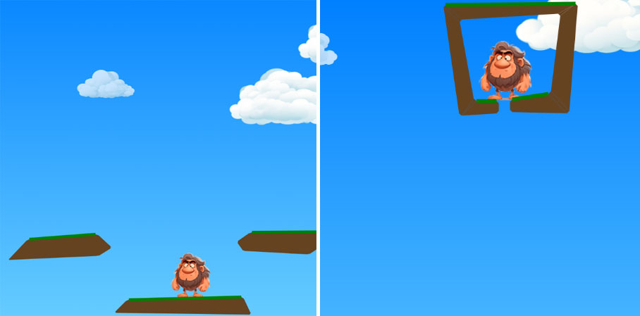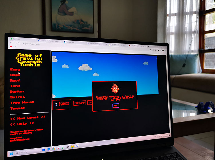 Ссылка на саму игру. Бесплатно, без регистрации и смс, без рекламы. Игра на английском, но там и не надо ничего понимать. Надо расположить камень так, чтобы он ударил чувака. На камень действует только сила гравитации. Самый легкий уровень (слева) -- все понятно. Размещаешь камень над чуваком, да и все. Справа -- приходится чуть-чуть подумать.