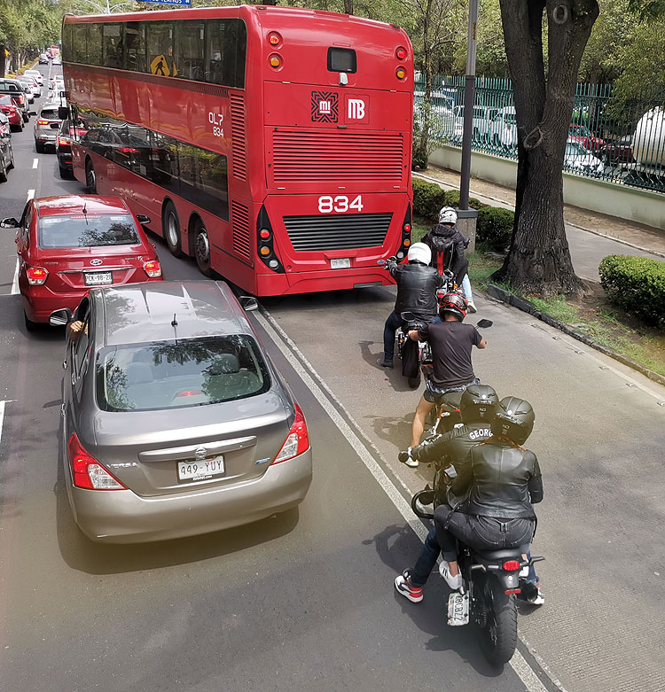 Не буду углубляться в тему, что делают, а чего не делают мотоциклы. В России мотоциклы ведут себя на несколько порядков более “как машины” из всех стран, какие я видела. В других странах обычно отношения к мотоциклам ближе как у нас к великам. “Где может проехать мотик – может проехать мотик”. Это не особенность Мексики. В Мексике этого намного меньше, чем в Турции, например.