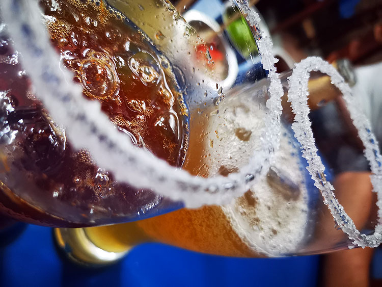 Что обязательно: у стакана делаем солевой край (можно добавить в соль красный перец). Выдавливаем в 0,33 пива сок одного лайма. Это челада. Если добавить еще чайную ложку вустерского соуса (здесь он очень популярен, встречается везде, называется “английский”) и плюс 2 капли табаско – получим “мичеладу”.