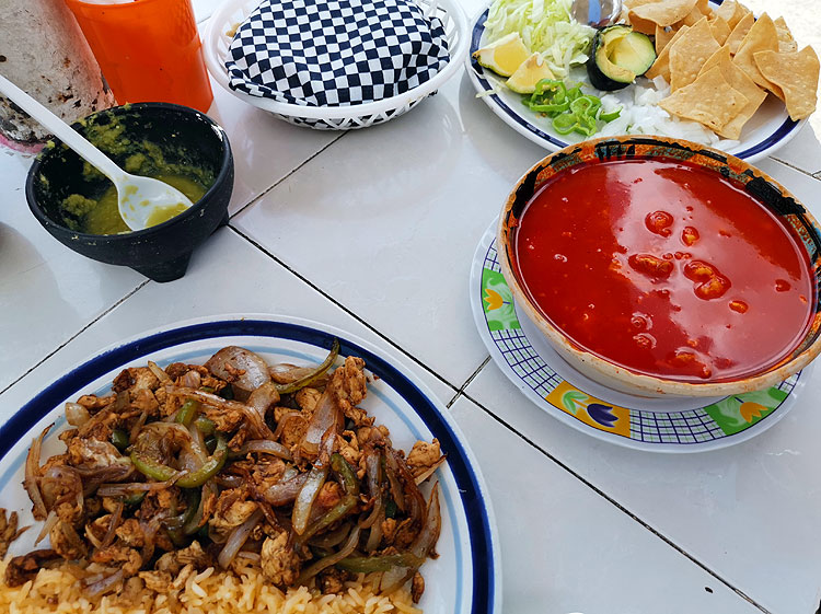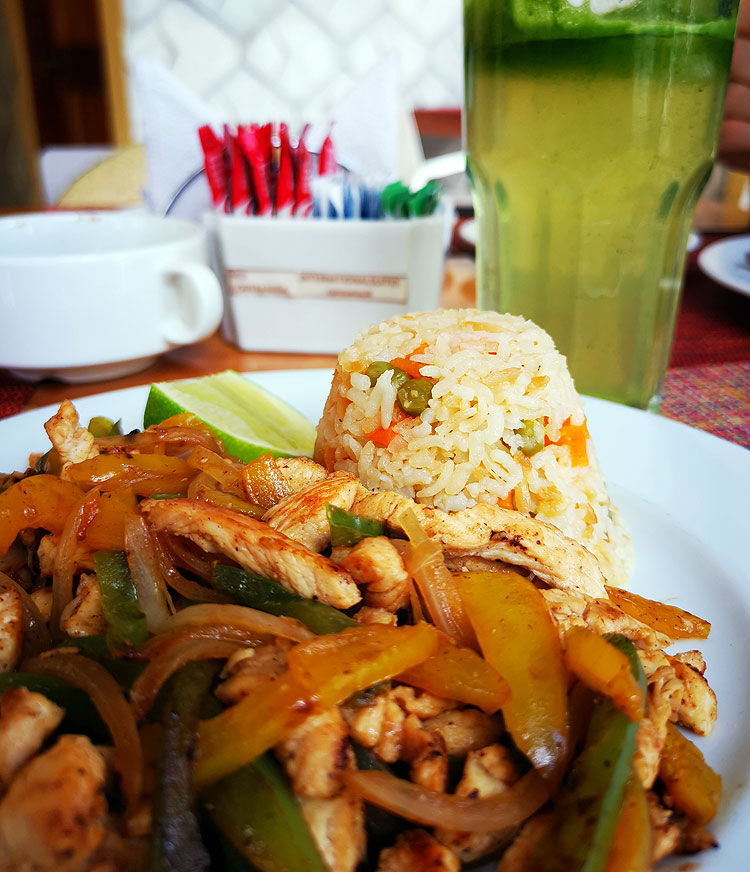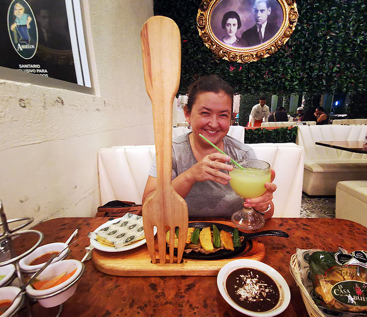 На предыдущем фото кроме супа видно выглядывает мясное блюдо. Собственно, это фахитас. Фахитас можно встретить везде за пределами Мексики (в отличие от того же посоле). И да, за пределами Мексики фахитас будет другой. Чем-то неуловимо непохожий на местный. Но в целом фахитас как раз норм, можно считать, что то, что мне давали в Омске под этим названием -- вариация местного. (И дома в Омске я готовила вполне приличный фахитас)