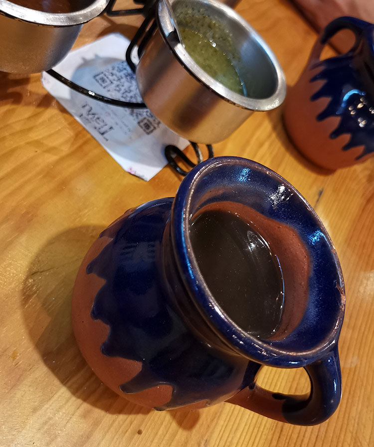 Традиционный местный вид кофе – “café de olla” (кофе в горшочке). Отличается тем, что варится с определенным набором специй (так же, как кофе по-бессарабски, например) и прямо в процессе варки добавляется плохо обработанный тростниковый сахар. Это вкусно ))