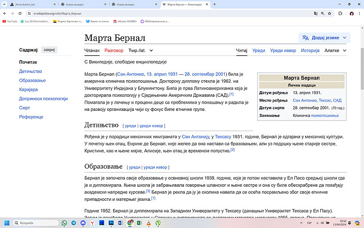 Давно все знают, что в разных странах гугл вам показывает разные дудлы. Вот, в Мексике, показывают дудл по поводу дня рождения Марты Берналь, например – это понятно уже по гугл-странице. Но кто же она такая. Лично я ищу википедию. Достаточно очевидно, что если человек настолько крутой, что про него нарисовали дудл, про него должно быть в википедии. ))
