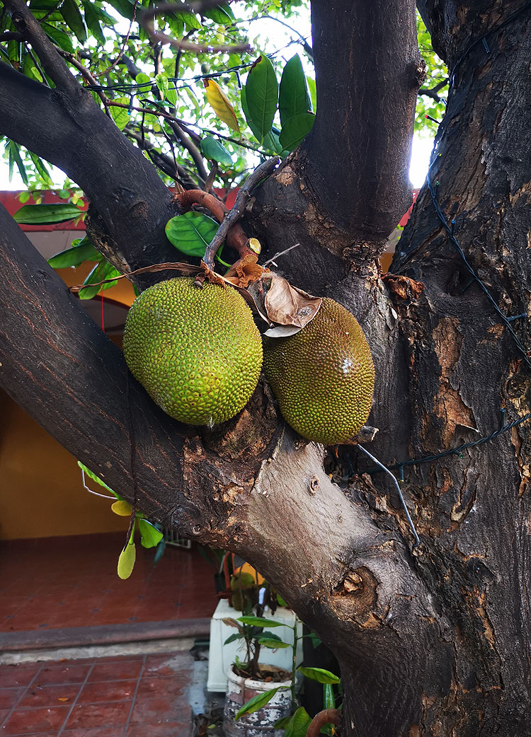 А в Мексике у меня что ни день – то восхищение. Ну, может, и не каждый день, но как минимум раз в неделю точно что-то из природы восхищает. Восхищение сегодняшнего дня: мы видели у соседей растущие плоды Хлебного дерева. Обалдеть. Это какой-то жюль-верновский фрукт, из приключенческих романов. Тоже ненастоящий какой-то немного.