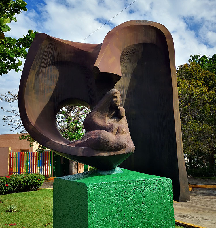 Эту скульптуру я уже два раза теряла. Первый раз мы приехали в Канкун, буквально третий день ее увидели. А потом я ее хотела найти, чтобы сфоткать спереди. И не знала, где она, еще плохо в городе ориентировалась. Потом нашли. Теперь я знаю, где она… была. Но ее там больше нет. Так что второй раз она потерялась с концами.