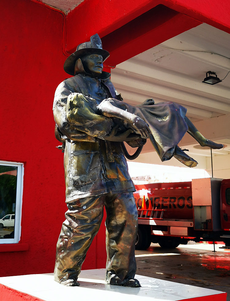 Ну, и вот я вижу в них во многих другой смысл. Не как искусство, а как аттракцион. Или даже еще какой-то. Не аттракцион, а не знаю, как назвать. Например, вот пожарный с девочкой. Ну, с точки зрения художественной ценности, конечно, это не “рабочий с колхозницей” (обожаю Мухину вообще, и РК в частности). Но я уверена, что во-первых, она повышает самосознание пожарным (пожарные гордятся, что про их работу помнят, и ее ценят). Во-вторых, люди мимо проходят, зацепятся взглядом, подумают о профессии пожарных, станут больше уважать. Или какие-то дети подумают, что вот хорошая, достойная профессия. Ну, и просто прикольно, что вообще есть.