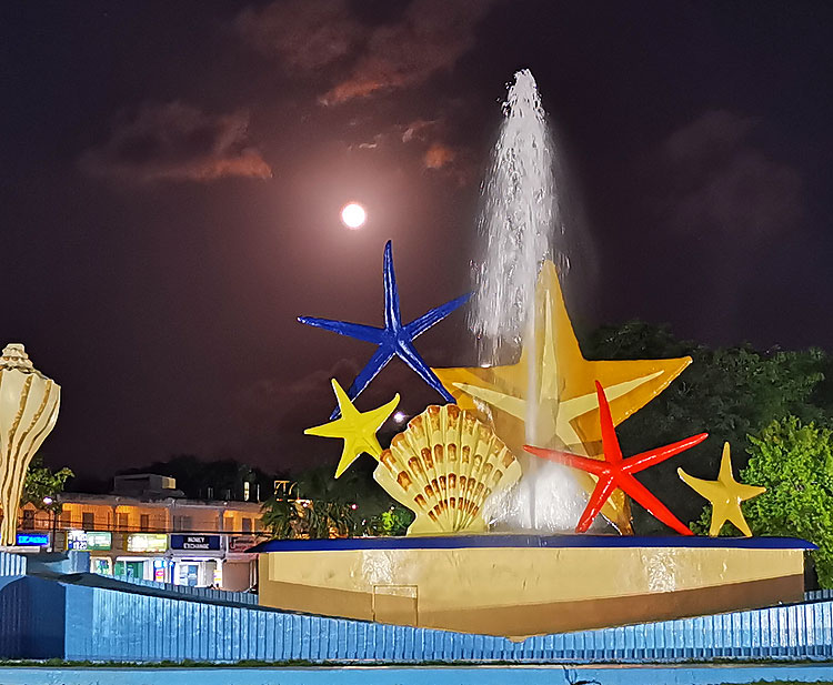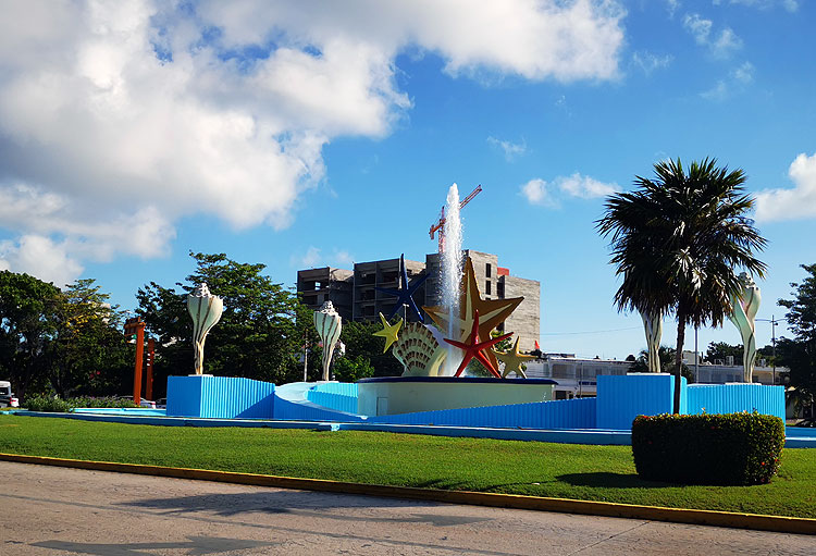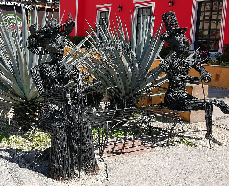 Это – тоже рекламная скульптура. Рекламирует, что тут – причал, от которого можно съездить в соседний городок, он же отдельный остров, называется “Остров Женщин” (Isla Mujeres).