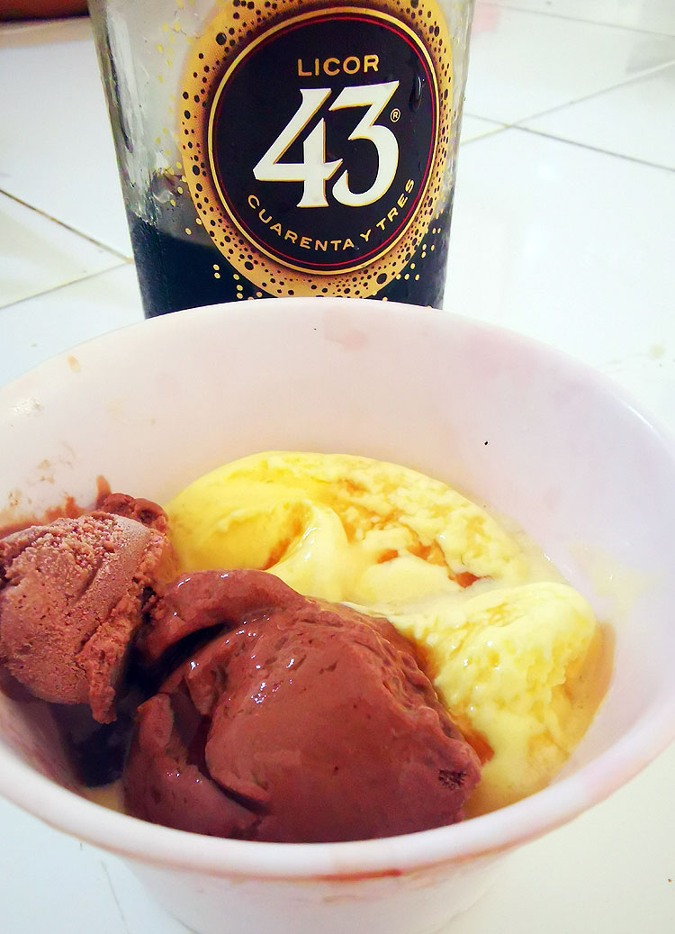 Вы знали, что отличный топинг для взрослого мороженого – ликер? Ликер может быть какой угодно абсолютно. От курасао до бехеровки и егермейстера. Мне нравятся больше всего как раз не слишком сладкие и очень крепкие ликеры в этой роли. Но и от бейлиса или лимончелло в таком качестве нос не ворочу. Очень люблю. (Не только ликеры, кстати, – но например, бренди – тоже очень круто работает как топинг для мороженого). Тут главное, баланс подобрать такой, как вам нравится. У меня есть ряд ликеров (и плюс бренди) – которые я так просто пить не могу, не нравится, а в мороженом – чудо чудесное.