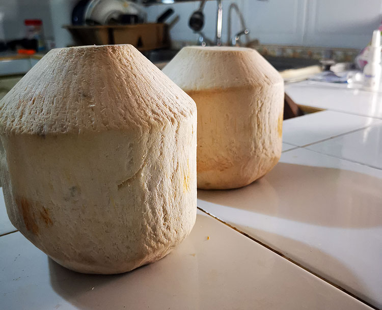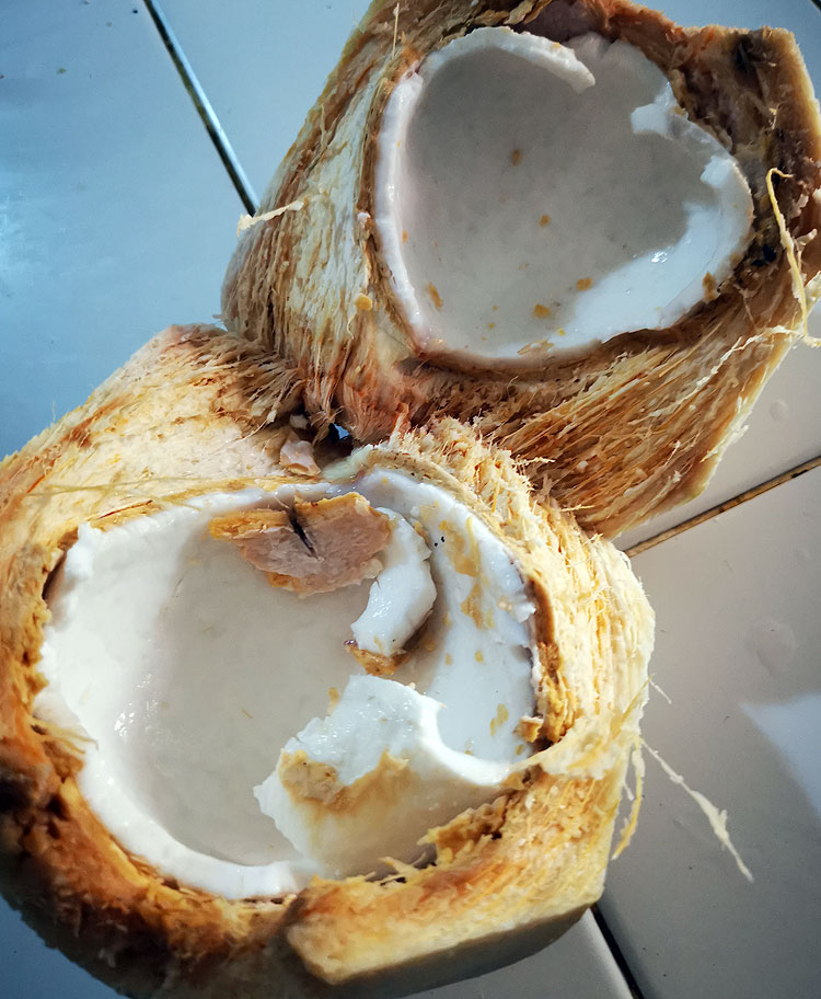 А зрелые кокосы муж наловчился чистить обжигом. Но, наверное, это уже другая история.