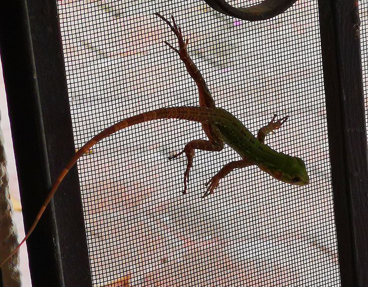 К нам в дом заползала. Не то, чтобы в этом было что-то необычное. Просто эта зеленая. Зеленых у нас мало, в основном серые.
