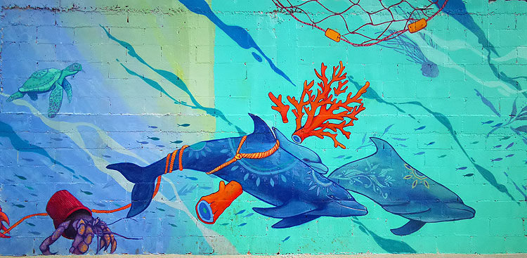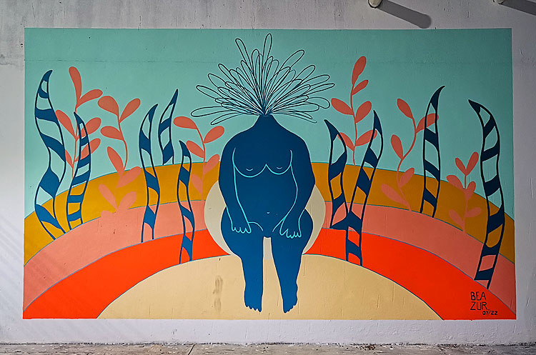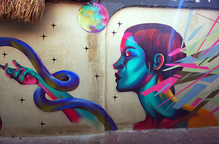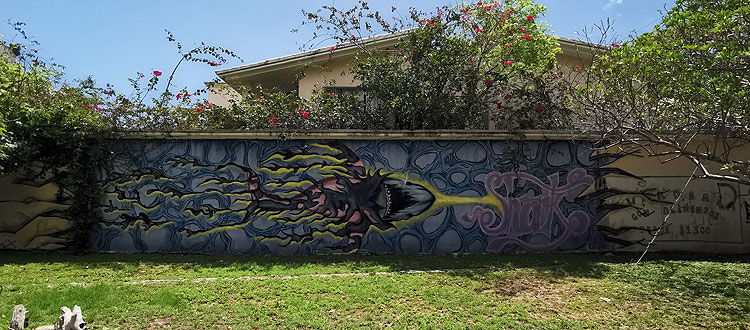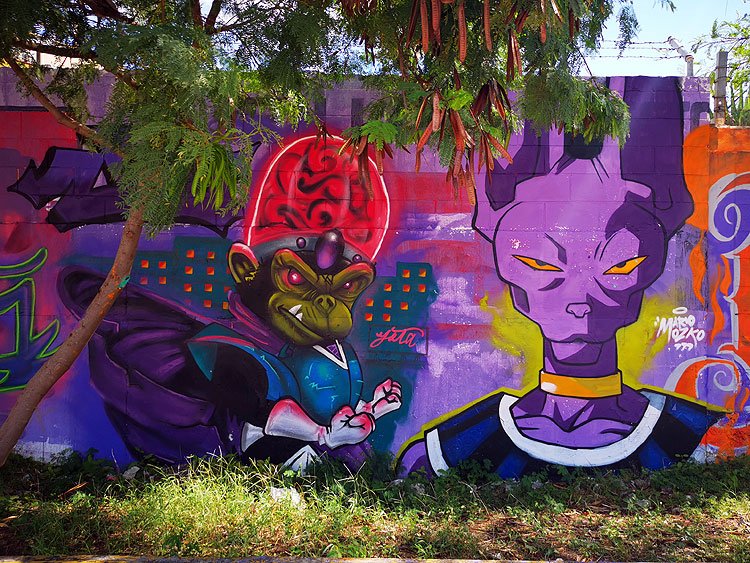 - На самом деле, там один длинный-длинный мурал (ну, вдоль забора) -- а это два из его кусочков. Но весь мурал в одну фотку не лезет.