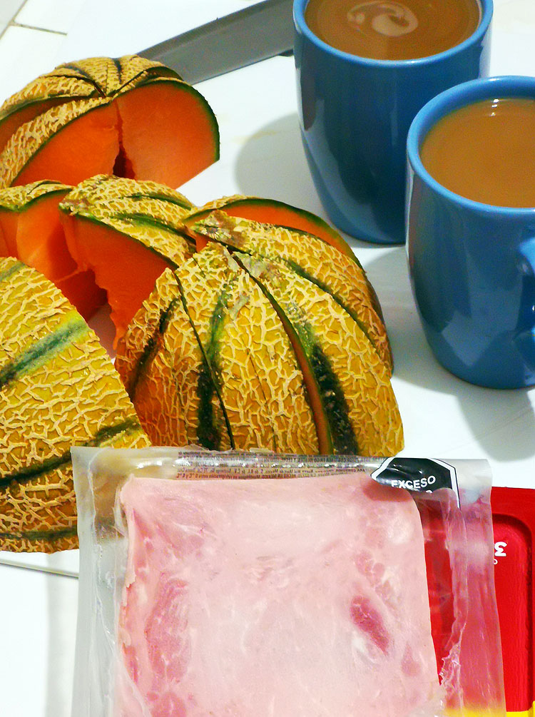 Кофе с молоком. Ветчина. Дыня.