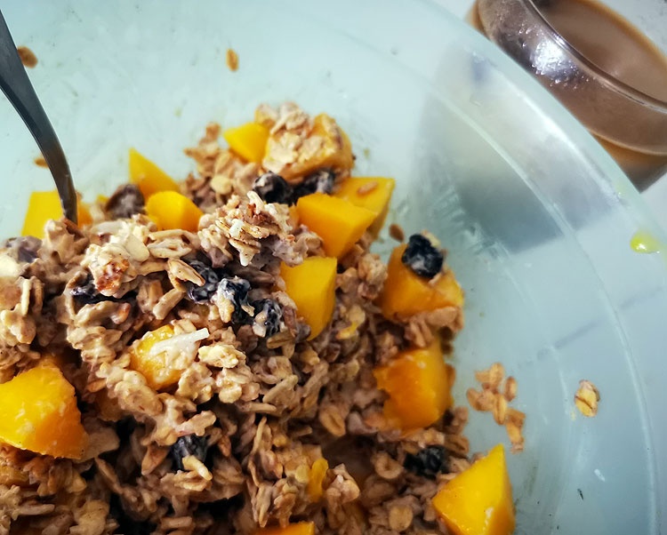 Это мюсли, в которые я накрошила манго. И айс-латте.