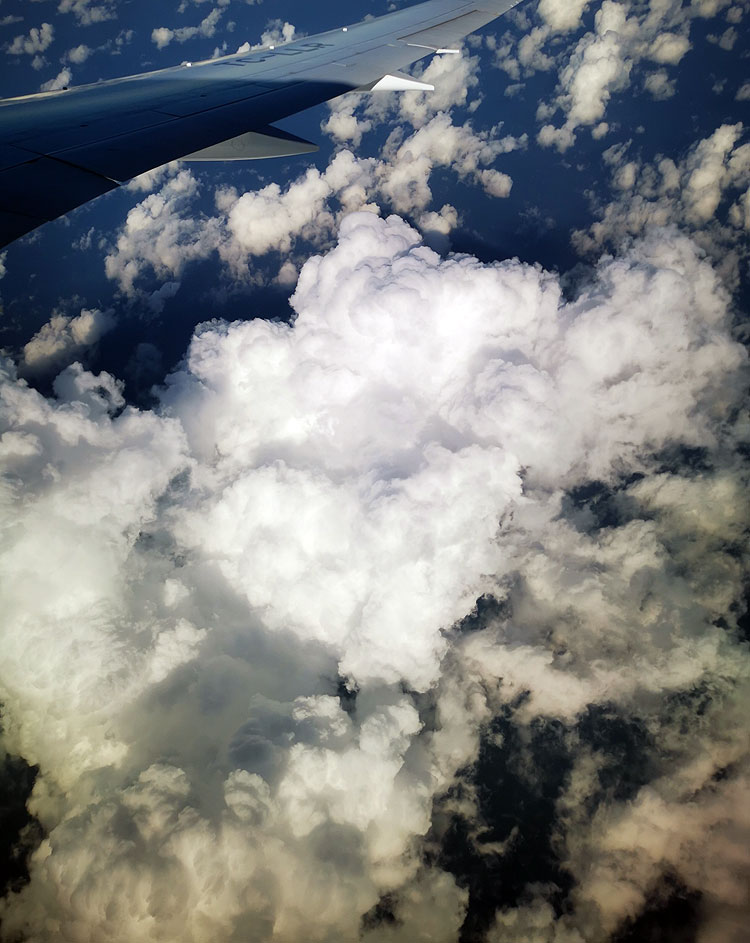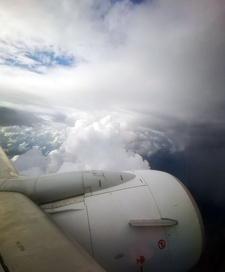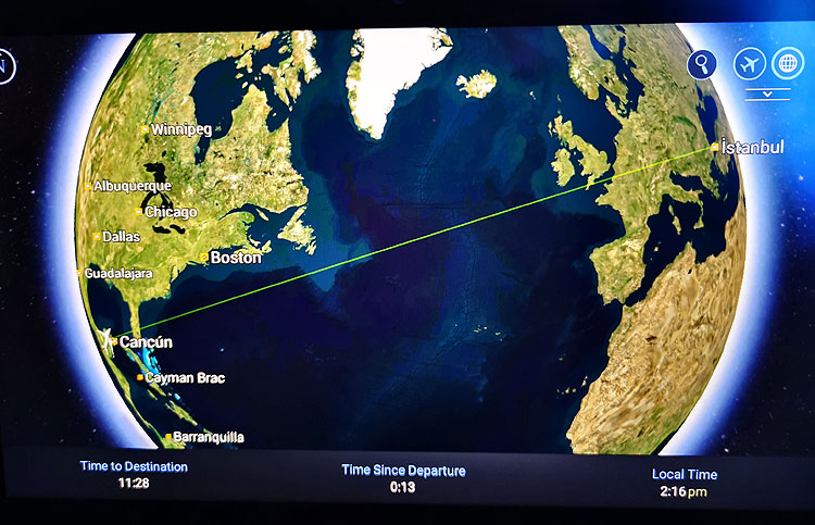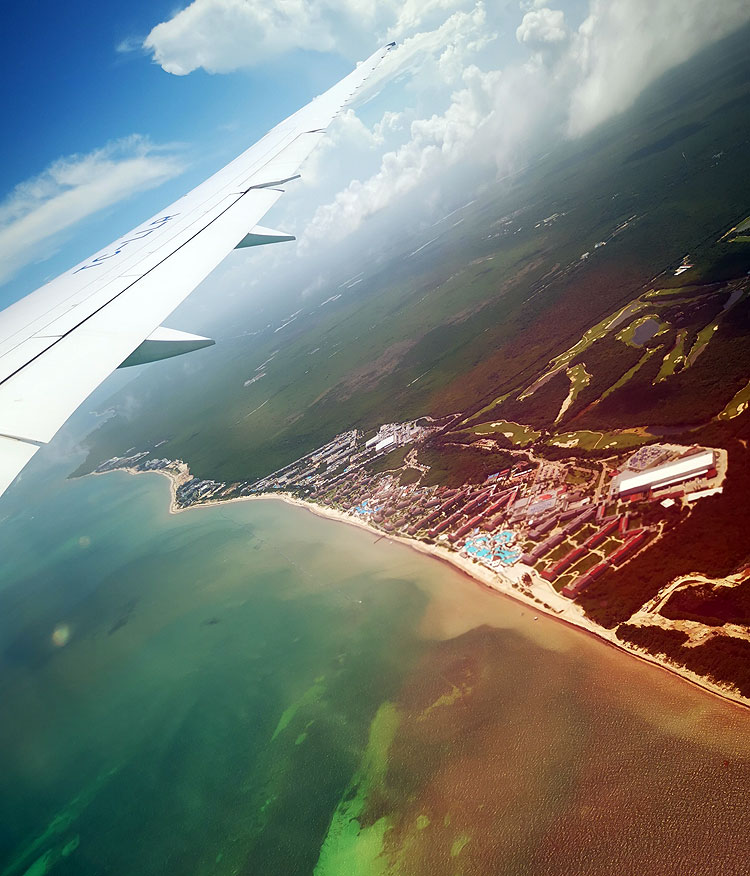 Чтобы долететь из Канкуна в Тбилиси нужно всего 27 часов (от двери до двери). В обратном направлении (из Тбилиси в Канкун) тем же рейсом мы летели что-то около 50 часов. Первый перелет длился несколько больше 12 часов, я сидела у окошка, не спала – в основном любовалась в окно и читала книжки. Это я объясняю, откуда фотки.