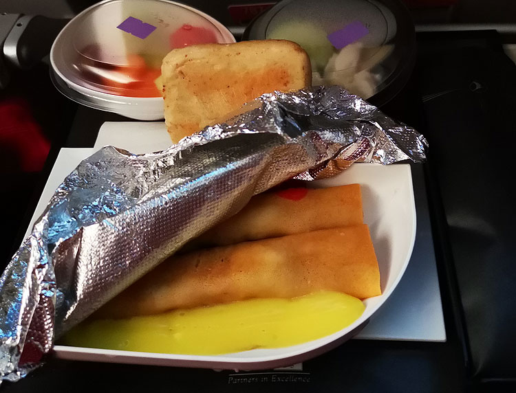 В первом перелете (12 часов) кормили два раза. Как бы обед (выше) и как бы завтрак (ниже).