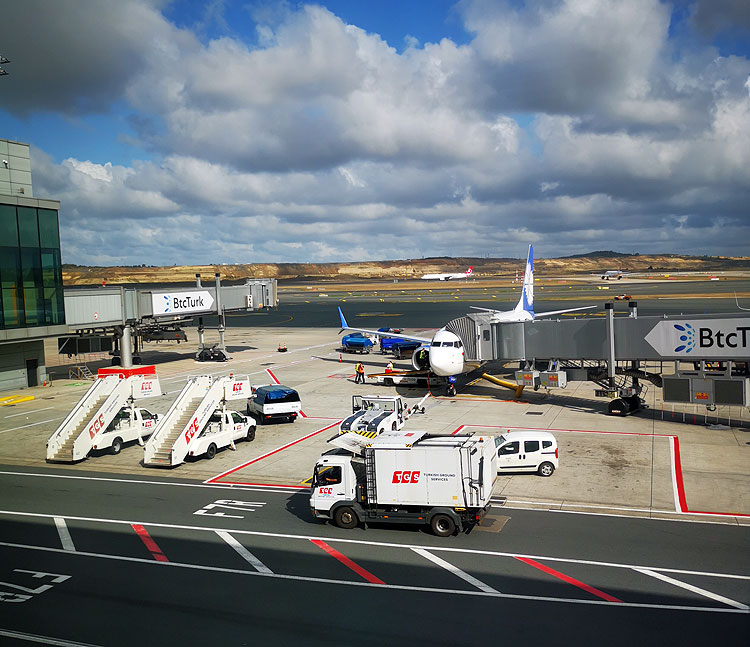 Это опять не наш самолет, наш опять Туркиш, с красным хвостом. Только в этот раз гораздо меньше, самого обычного размера.