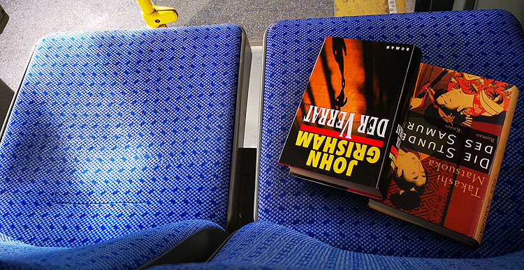 Первые (кого мы наблюдали) – это, собственно, мы. Мы увидели сидения с книгами, книги на немецком, постеснялись к ним садиться – и сели на другое сидение.