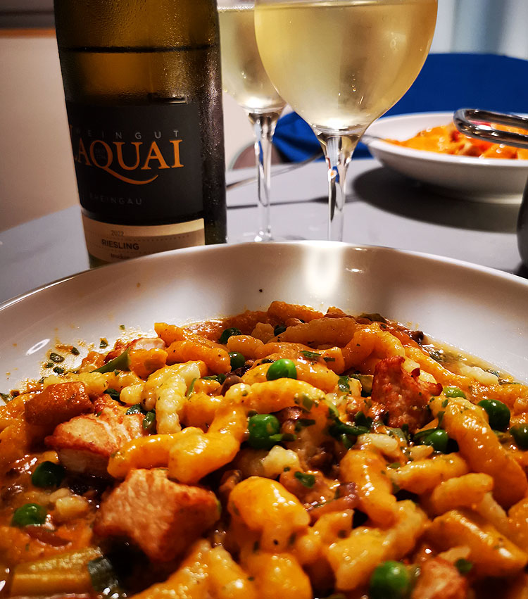 Сейчас мы берем вина в основном низкой ценовой категории. Потому что практически все они отличные, и нам доставляют удовольствие. Когда (если) ими набалуемся – видимо, перейдем к более дорогим. Вина, которые мы пьем в 90% случаев укладываются в диапазон 2,5-4 евро. 80% из них – немецкие. (Опять же, когда наиграемся немецкими – наверняка перейдем на испанские-итальянские-португальские; но это еще когда будет….