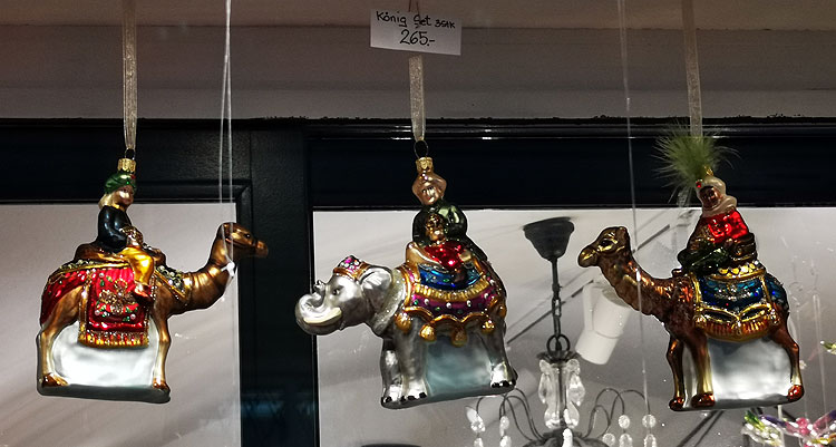 - Елочные игрушки. Вот таких в России не бывает. Это по-русски будет "волхвы" (или "три царя"), по-испански Reyes Magos (короли-маги), по-немецки Heilige Drei Könige (три святых короля).