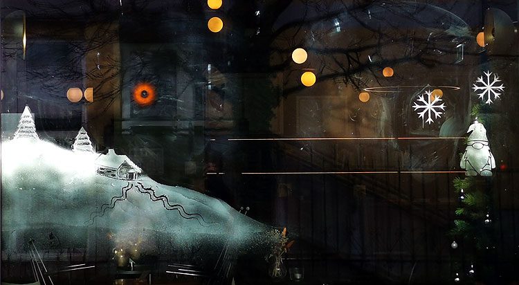 - Магазины, которые не продают ничего новогоднего -- но тоже оформляют витрины.