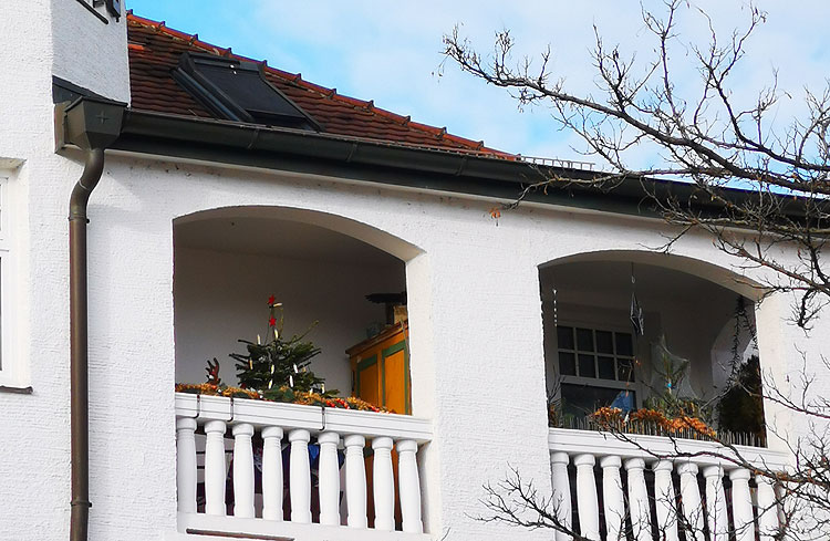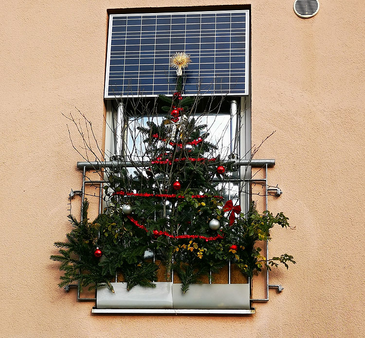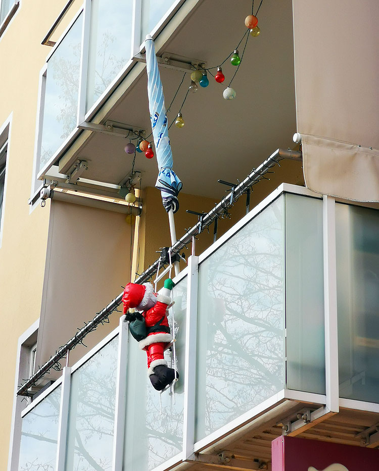 - Совсем капельку покажу, как жители наряжают свои жилища к Новому году. Я уже писала, что довольно много кто ставит елку не внутри квартиры, а снаружи, на балконе.