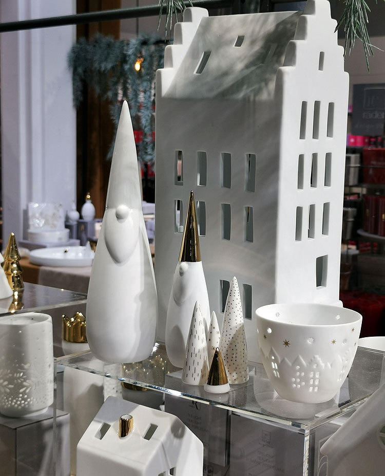 - В магазинах вещей для дома -- целые экспозиции, изображающее рождественское убранство.