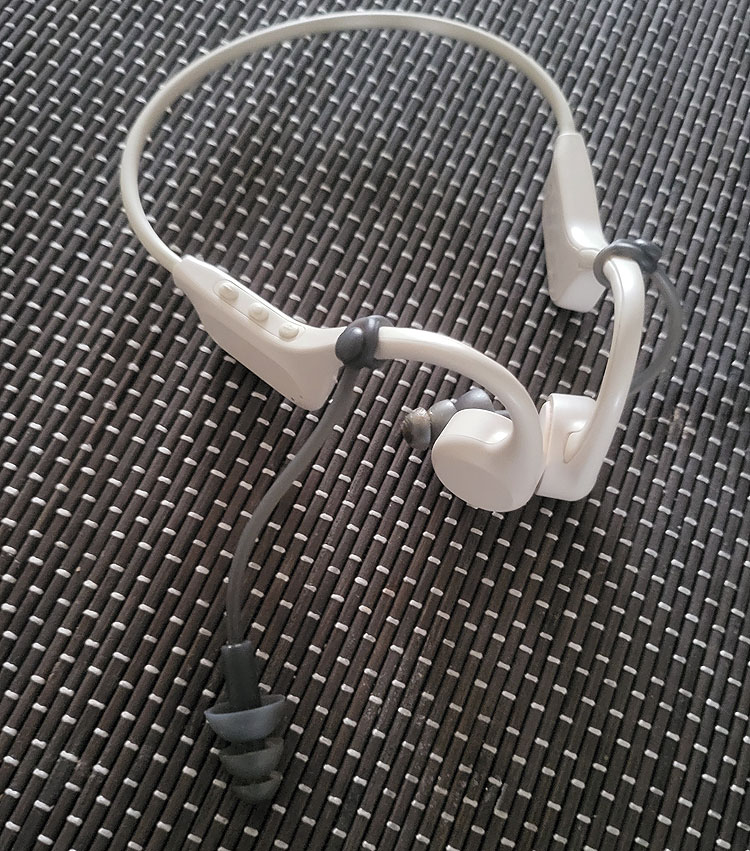 И через некоторое время муж мне купил наушники для плаванья, которые могут работать в двух режимах: и как гарнитура для телефона (в частности, можно слушать музыку/аудиокниги с телефона), и как мп3-плеер.