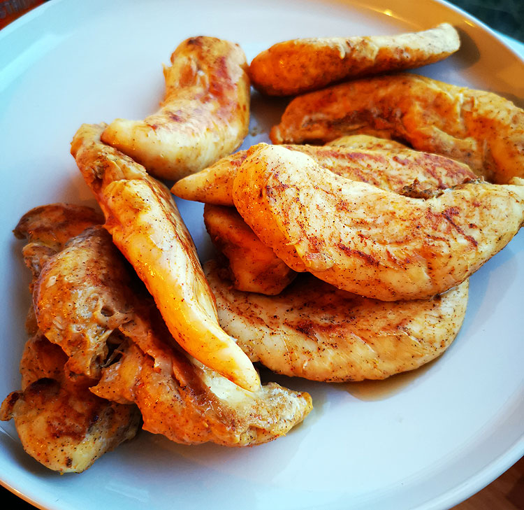 Это вообще я очень люблю готовить. Просто мясо жарить в разных видах на сухой сковородке. Вот, например, куриные грудки.