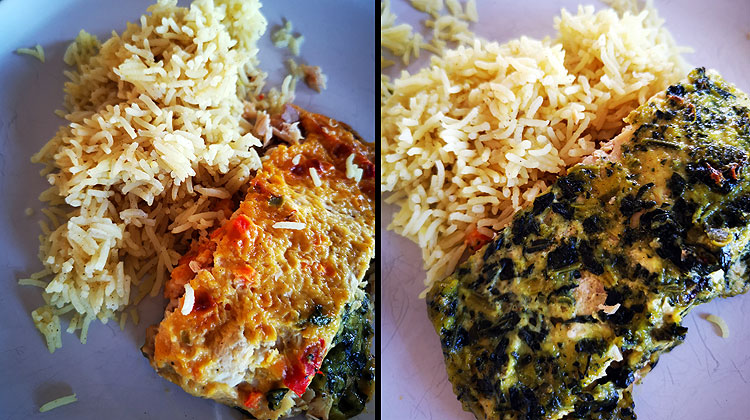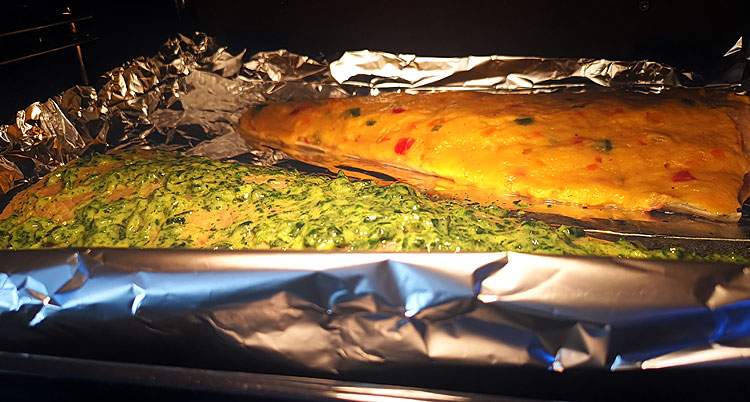 Одно натерто шпинатом, другое “овощами”, что бы это ни значило.
