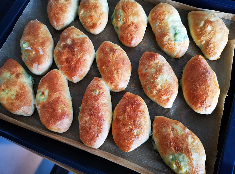 Налепили пирожки. Можно пожарить, можно смазать яйцом – и в духовку.