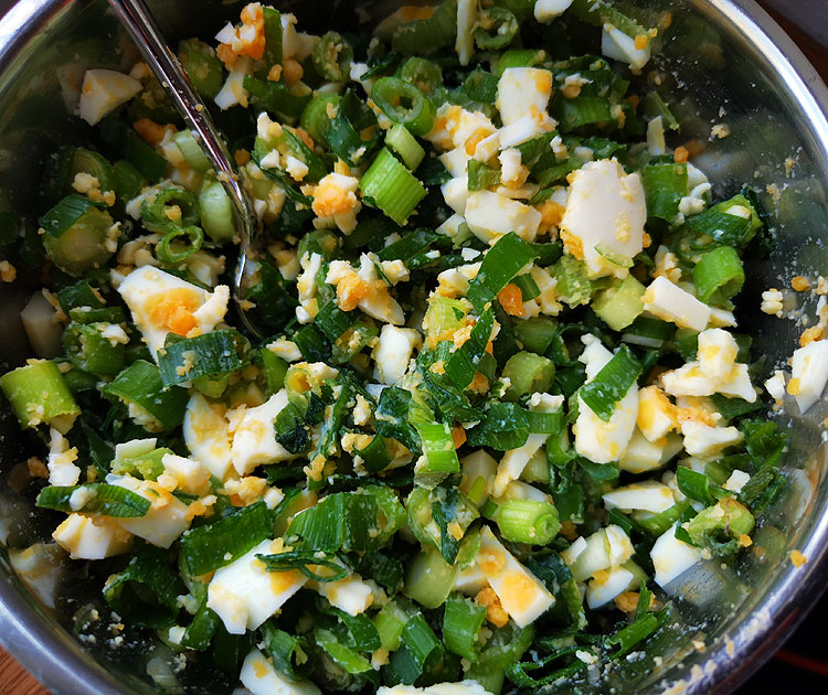 Пока там тесто отдыхает – делаем начинку. Можно любую, но нам захотелось с луком-яйцом. (Моя подруга называет пирожки с такой начинкой Робин-Гуды).
