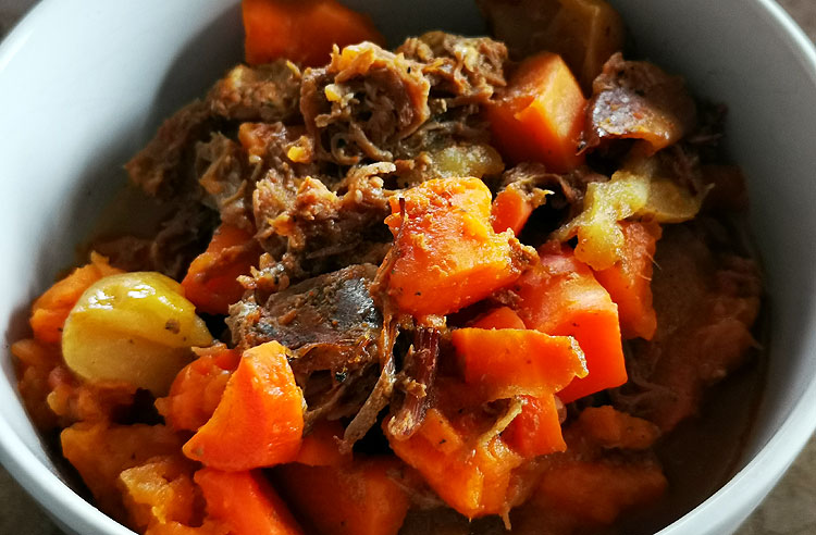 Под новый год я купила в магазине большой кусок мяса (2,5 кг) "для запекания". Запекла. В новый год до него руки и ноги не дошли. На второй день тоже. 2-го января муж вышел на работу -- а я решила, что мясо надо как-то спасти от пропадания.