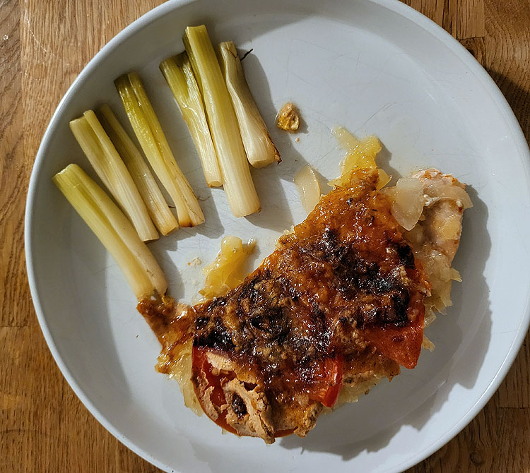 Это я пыталась из немецких продуктов лук-камбрай сделать. Ожидаемо, не вышло даже бледной копии. Но в целом это вкусно ))