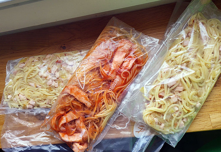 Аналогично расфасовала с картофельным пюре. А когда хотела сделать со спагетти – меня слегка понесло, и получилось еще вкуснее.