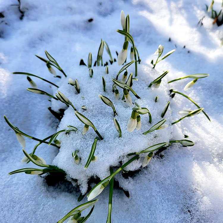 встретил нас весь засыпанный снегом, и -6. После +22 в Бильбао -- особенно холодно. (Зато +18 в Бильбао после мюнхенских -1 было особенно приятно). Подснежники под снегом.