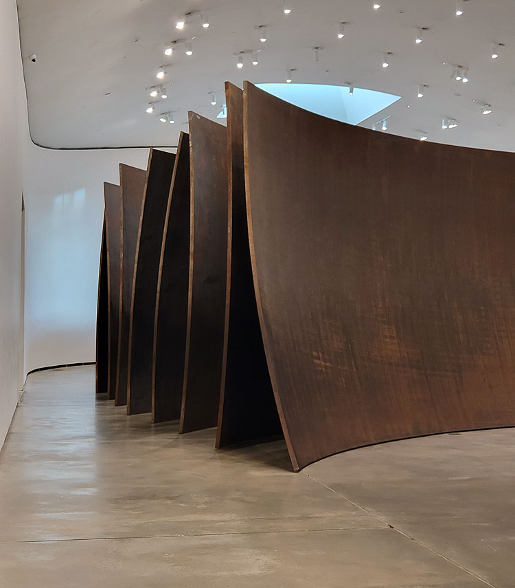 На картинке выше – работа японской художницы Яёи Кусамы. Открыли для себя имя скульптора Ричарда Серра. Раньше не видели его работ вживую – а они как раз понятны только вживую.
