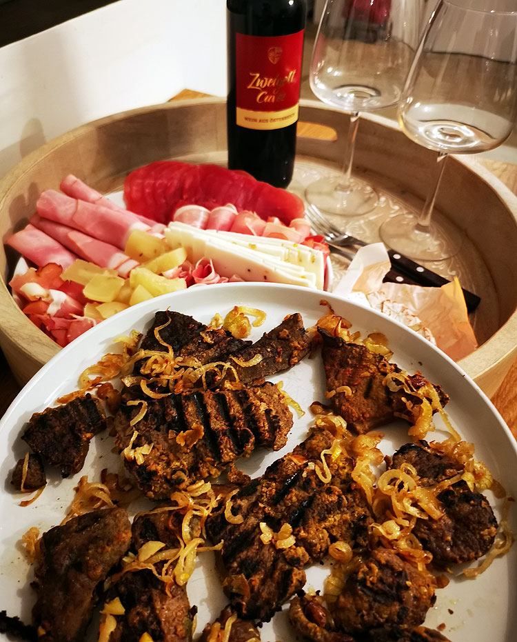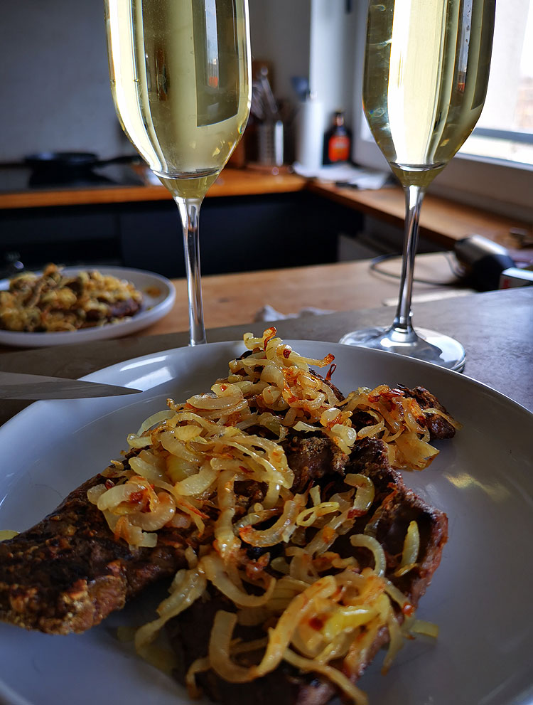 Про вино к печенке. Я не поняла этот феномен. Обычно к печенке никакое вино у нас не просится. Но и вот печенку с луком я редко готовлю. И уже не помню прошлый раз, когда так готовила. Может, это именно феномен таких больших “стейков” из печенки, а не просто печенки.