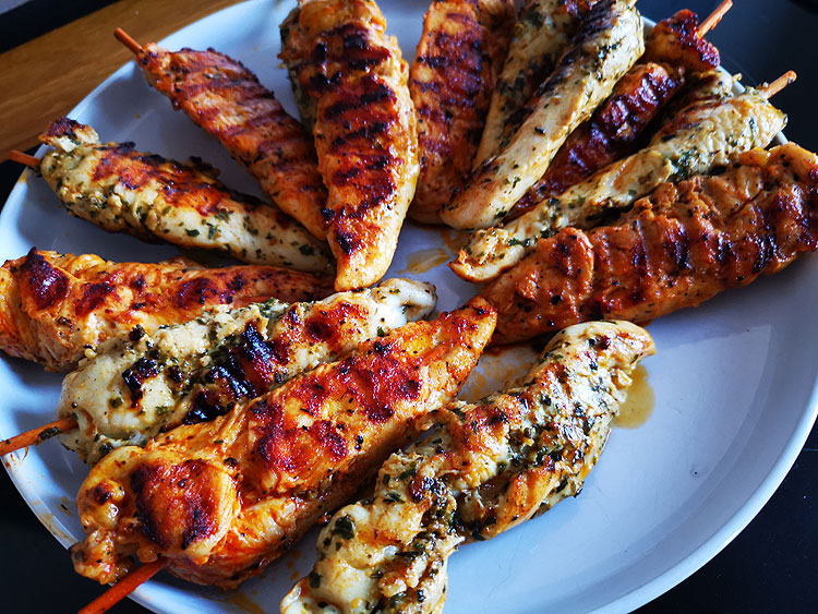 Куриные шашлычки. Жарила на сковородке-гриль.