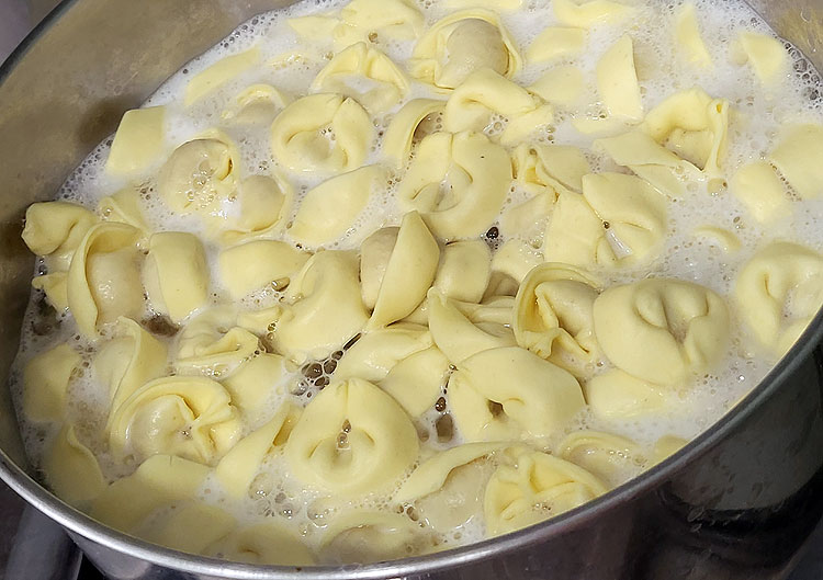 И нет, это, конечно, не пельмени, а “тортеллини с прошуто крудо”.