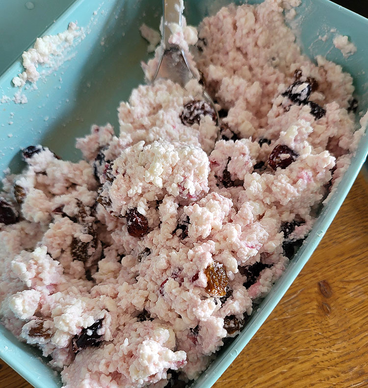 Это простой обычный творог. Вот прямо ровной такой, как мама в детстве делала.